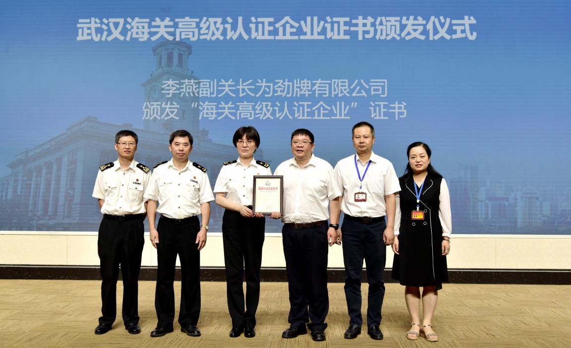 9月2日,武漢海關(guān)副關(guān)長李燕在黃石海關(guān)關(guān)長馬洪波等領(lǐng)導(dǎo)的陪同下,蒞臨勁牌調(diào)研指導(dǎo)工作,并為公司頒發(fā)“海關(guān)高級(jí)認(rèn)證企業(yè)”證書。勁牌公司總裁王楠波、副總裁李暉予以了熱情接待。